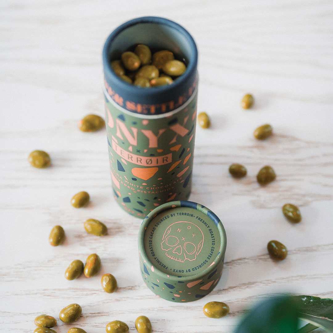 Experimenting with white chocolate and matcha has yielded exceptional results. Now you can join us in exploring the new evolution of complex, delicate white chocolate infused with organic Kagoshima matcha atop freshly roasted pistachios. The silky texture of white cocoa butter combined with a nutty crunch results in a sweet snack that is refreshingly novel and downright delicious.